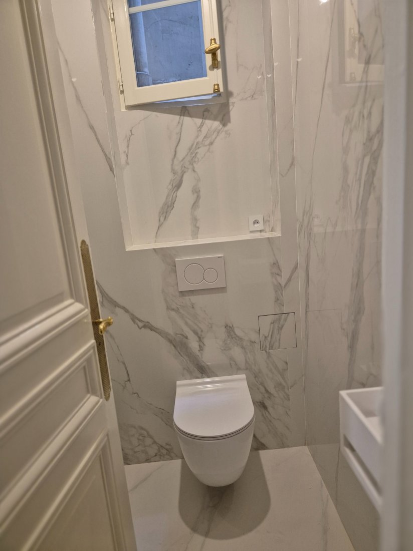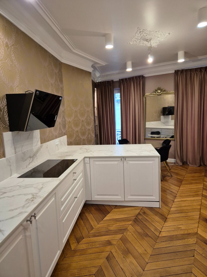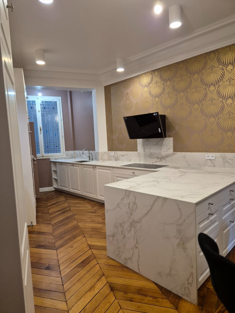 Photo d’un appartement parisien entièrement rénové par Str Selmani à Paris 4e : espaces lumineux, matériaux modernes, finitions soignées et agencement optimisé, illustrant une rénovation complète de A à Z.